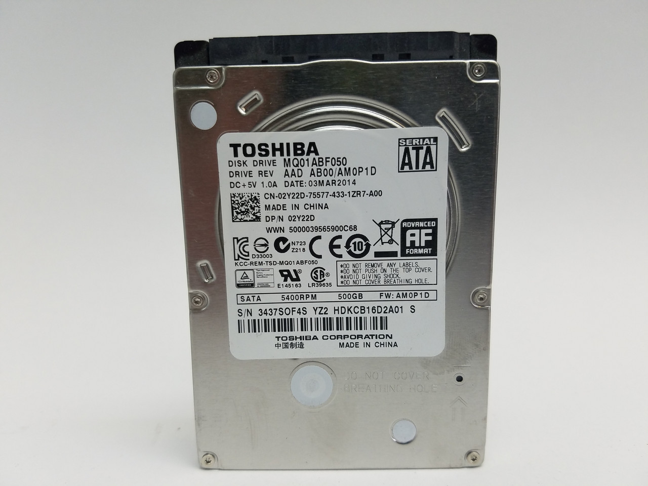 Toshiba MQ01ABF MQ01ABF050 500 GB 2.5" SATA III 5.4K Laptop Hard Drive