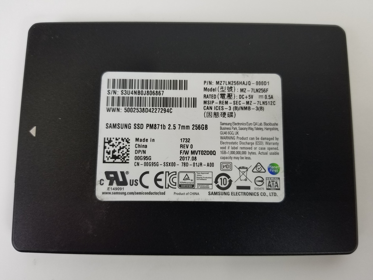 Samsung MZ-7LN256F PM871b 256 GB SATA III 2.5 in Solid State Drive
